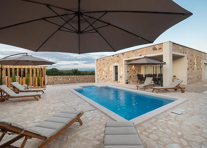 A Villa Lapidea Vodice hegyre néző teraszt, valamint magán úszómedencét biztosít.